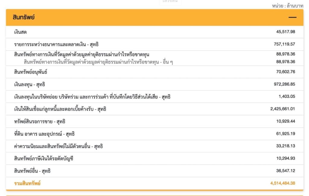 • จำนวนทรัพย์สินของธนาคารกรุงเทพ